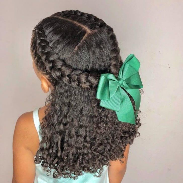 Voici une idée de coiffure idéale pour les petites filles aux cheveux bouclés : une jolie tresse sur le côté qui se fond dans une cascade de boucles souples. Ce style associe praticité et charme, en gardant les cheveux bien en place tout en mettant en valeur leur texture naturelle.
